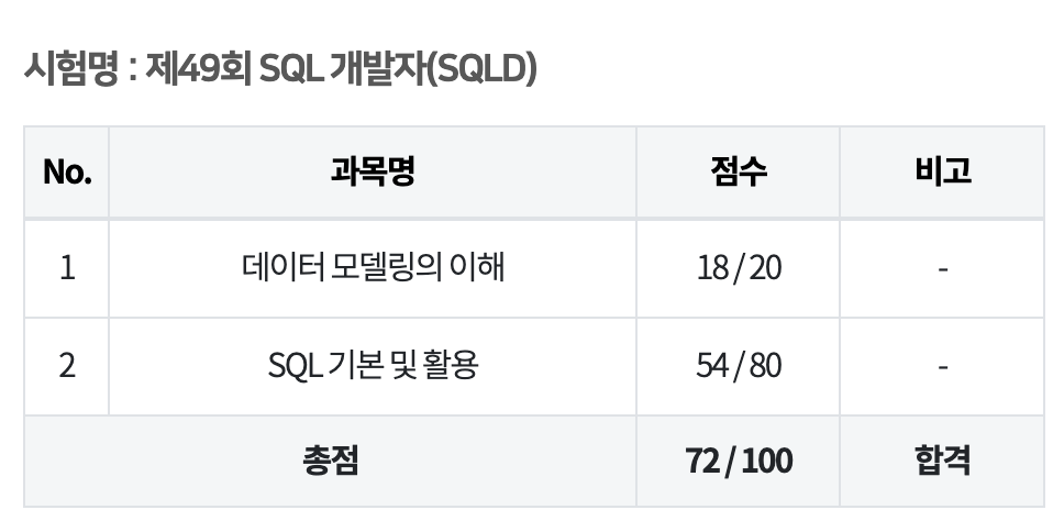 내가 확실하게 아는 문제들을 다 먹고 들어가면, 어려워서 못푸는 문제들이 꽤 있어도 그게 날 불합격 시킬 정도로 많지는 않다. 그리고 그렇게 공부하면서 SQL에 대한 역량이 올라가면 햇갈리는 문제를 만나도 정답을 유추할 수 있는 능력이 길러져서 정답을 고를 확률이 더 높아진다.