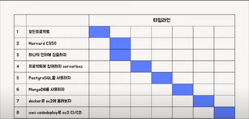 위 영상에서는 백엔드 개발자가 되기 위한 과정을 단계별로 소개하고 있다.