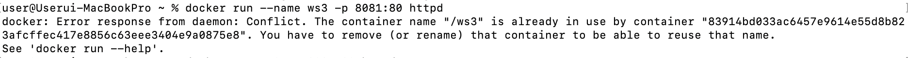 user@Userui-MacBookPro ~ % docker run --name ws3 -p 8081:80 httpd