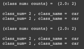 {class num: counts}는 사진에 나타난 클래스의 번호와 개수를 의미한다.