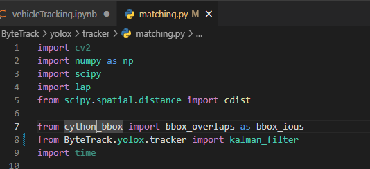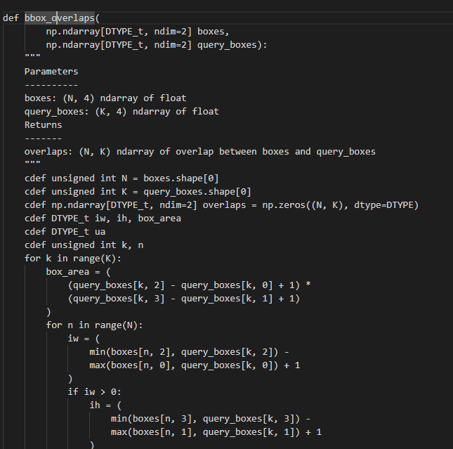오류의 원인이 된 코드가 import 하고싶어 하는 bbox_overlaps이고 이는 cython_bbox.pyx 파일에 정의되어 있다.