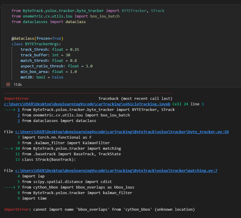 이렇게 기존 코드에 추가로 폴더cython.bbox를 명시하였고 이후 오류가 발생한 코드를 실행시켜보면