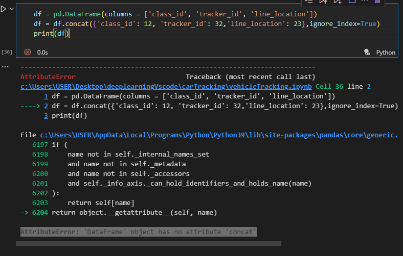 AttributeError: 'DataFrame' object has no attribute 'concat'