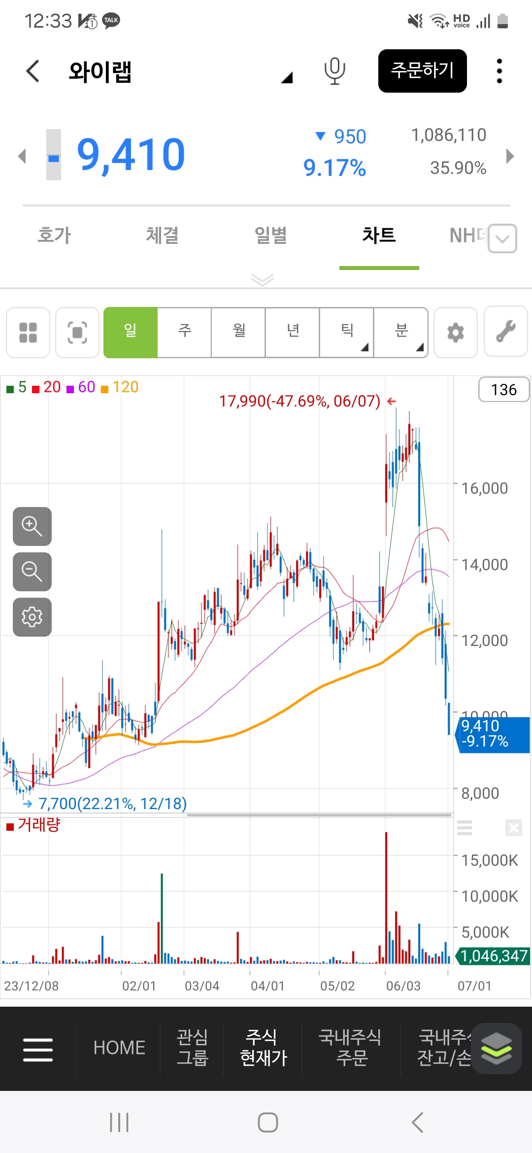 이런게 흔히들 말하는 차익실현 매물인 것 같다.